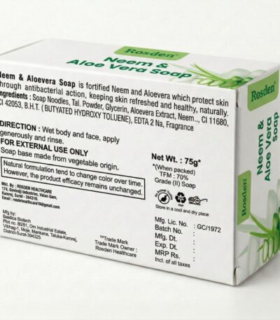 For skincare, Rosden Ayurvedic Soap combines herbal ingredients like aloe vera and neem to gently cleanse and protect the skin. It can also be used as a herbal antifungal soap to maintain hygiene and freshness.