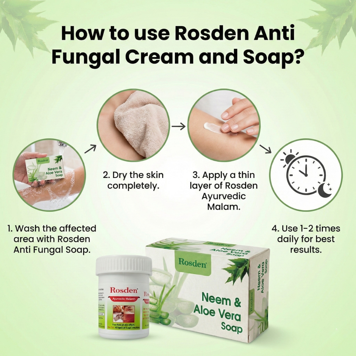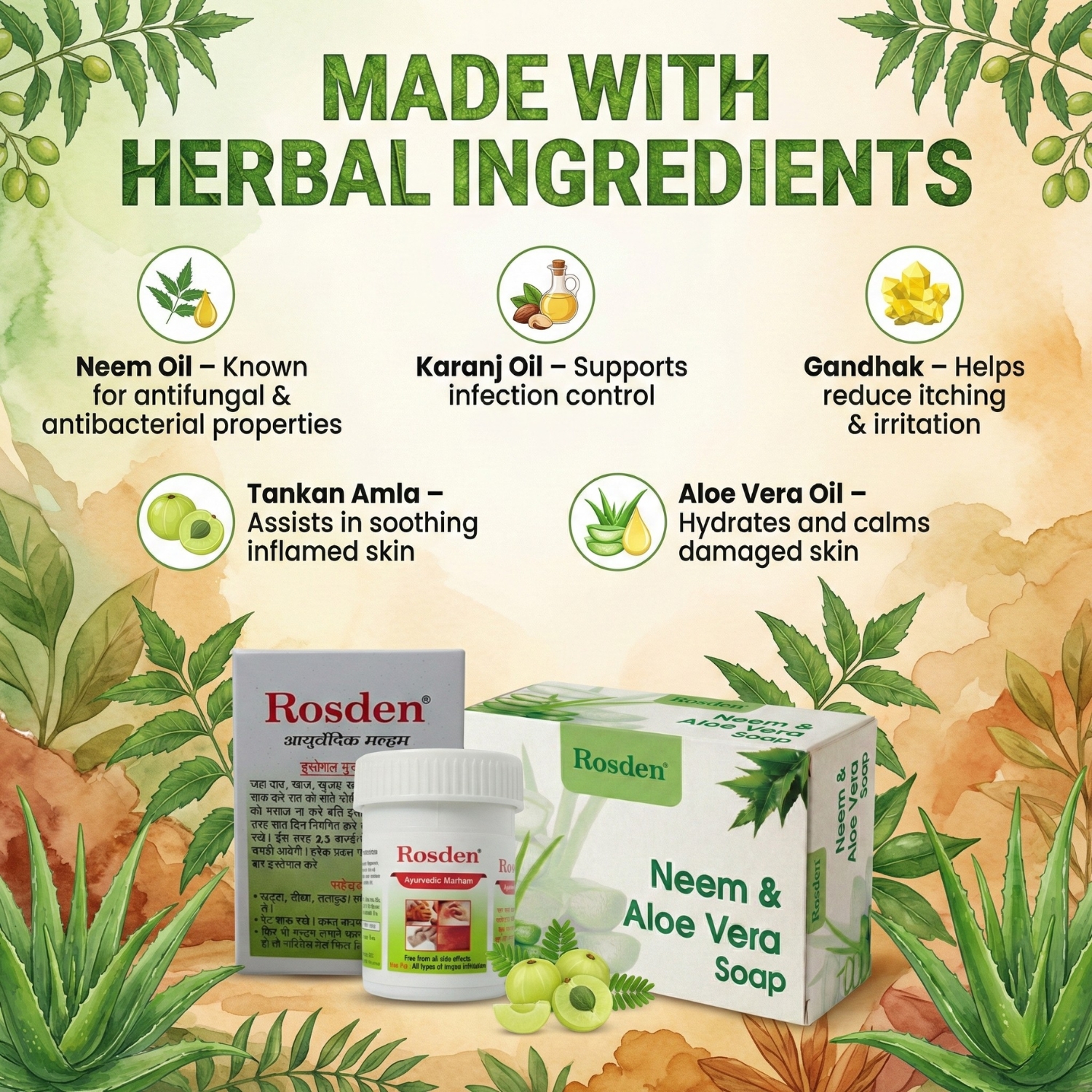 Product Name: Rosden Ayurvedic Antifungal Combo (Neem Aloe Vera Soap + Malam)