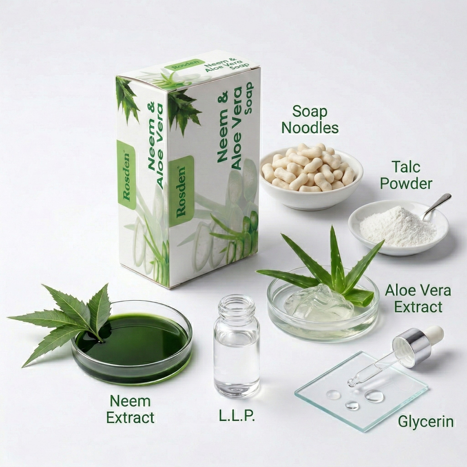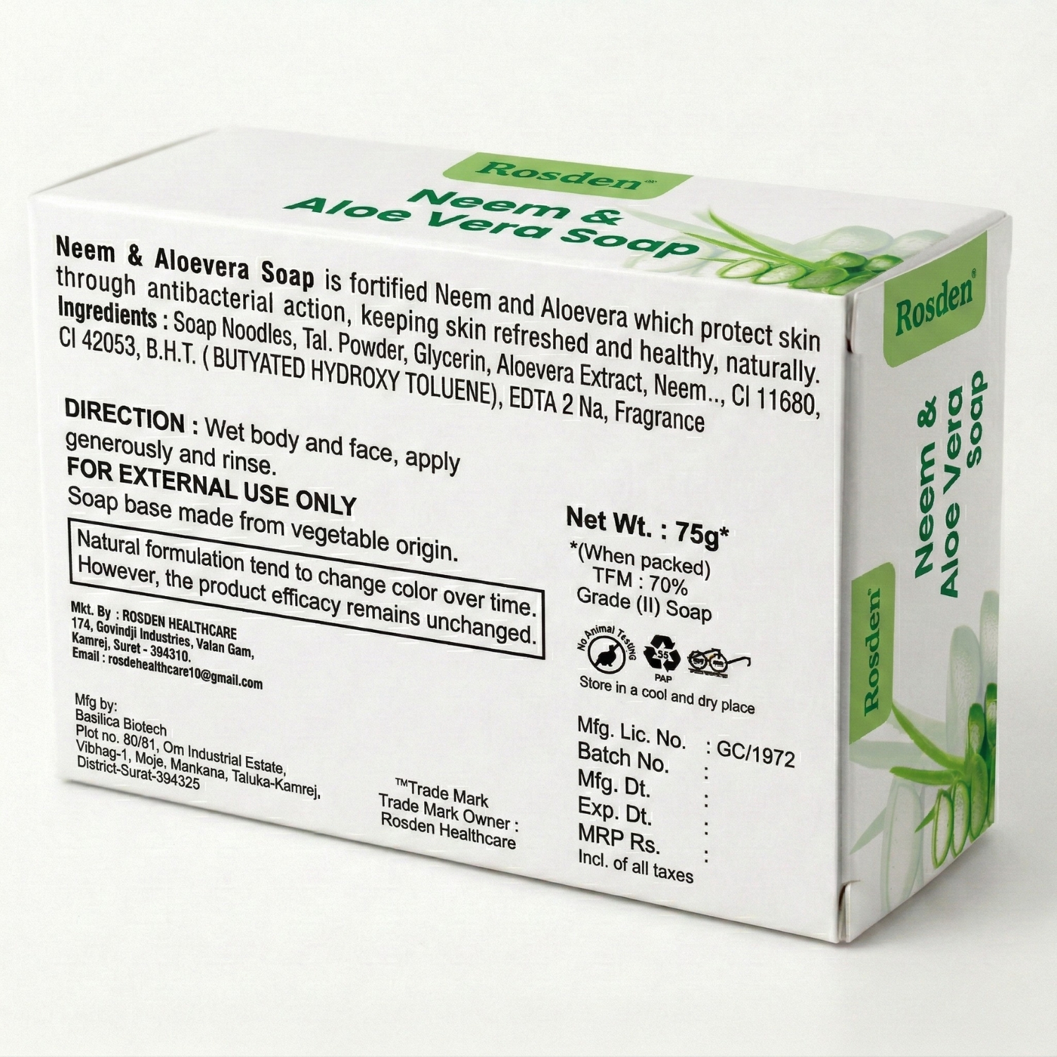 Rosden Aloe Vera & Neem Soap is made with herbal ingredients inspired by traditional skincare practices. The combination of aloe vera and neem provides a natural herbal cleansing experience compared to regular chemical-based soaps.